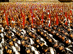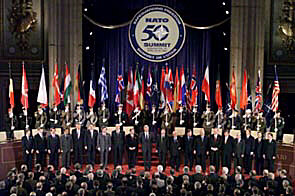 The attached photo of the opening of the 50th NATO anniversary, from U.S. News & World Report's online site is so blooblipurdling I'm trying to find a photo I've seen in the past of one of Hitler's super rallies that was almost identical... perhaps they were all almost identical, with their pageantry.
