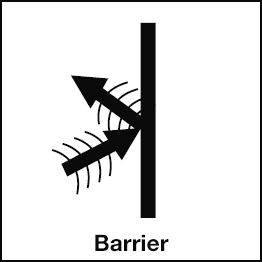 Barriers reduce sound by blocking sound wave transmission and reflecting sound waves back to the source. Use barriers in passageways to reduce sound transmission to surrounding areas or to divide an open area. A barrier's ability to reflect sound back toward the source is represented by the Sound Transmission Loss (STL) . The STL is the difference between the sound level striking the barrier and the level of sound transmitted through the material. So the higher the STL, the better the barrier performs.